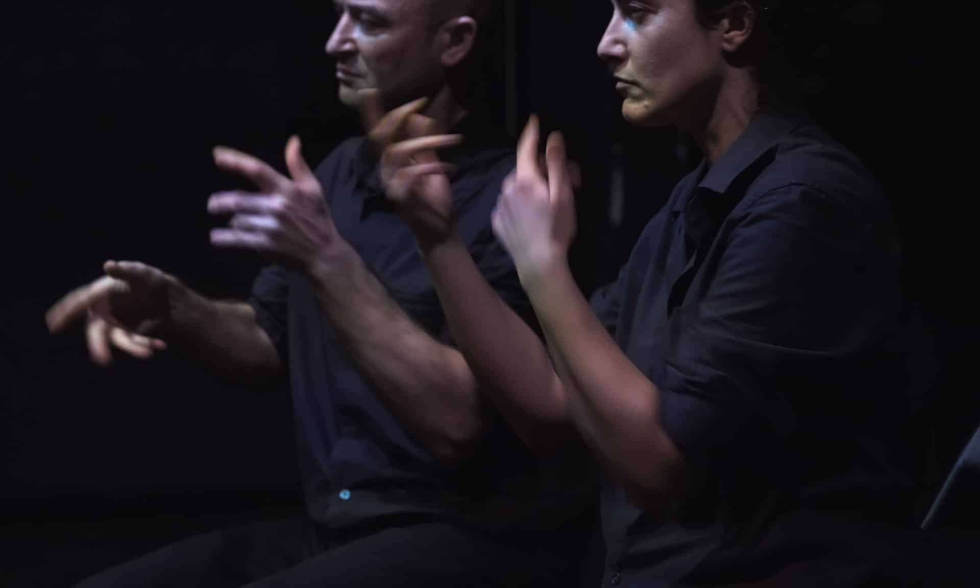 Emportés par le morceau du Presto de L’Été de Vivaldi et ses remixes exacerbés, agités par la violence sèche des cordes frottées, deux corps livrent un impuissant combat, cloués à leurs chaises. Leurs mains palpitent et se débattent dans un babil frénétique et obstiné. À l’affût de tous les mouvements du corps, de la lumière et du silence, cette mécanique insensée se monte, se démonte, s’interrompt et se remonte, passant de l’oscillation discrète d’un pendule jusqu’au paroxysme d’une déflagration totale.